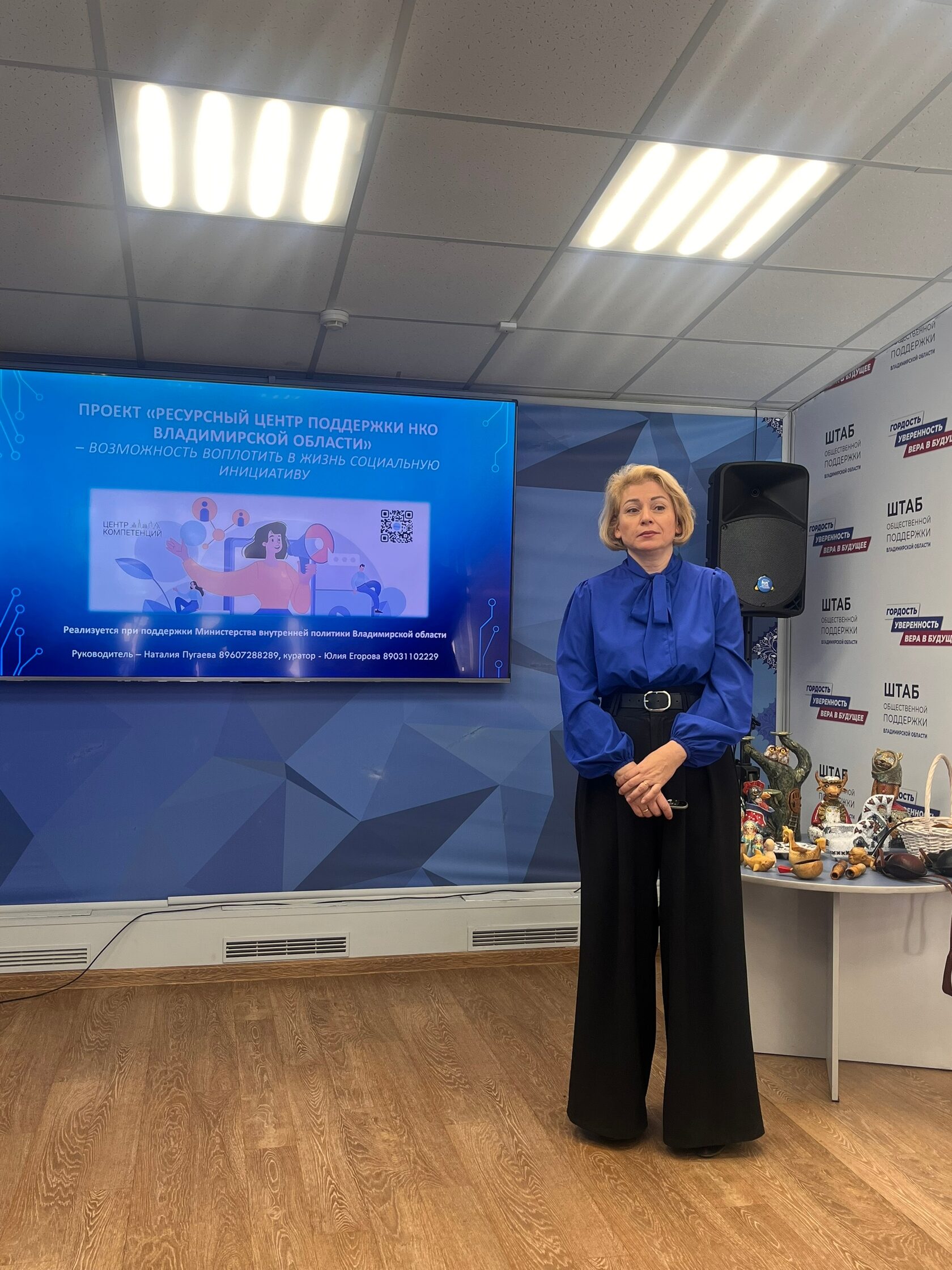 - Руководитель проекта «Координационный ресурсный центр поддержки НКО» при поддержке Министерства внутренней политики Наталия Пугаева, которая поделилась, как можно создавать социально направленные инициативы и превращать их в успешные проекты.