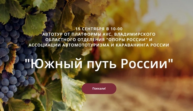 Владимирское областное отделение «ОПОРЫ РОССИИ» приглашает вас в уникальное девятидневное путешествие, которое станет мощным инструментом для роста вашего бизнеса! Это больше, чем просто автопробег – это погружение в экономику и колорит южных регионов.